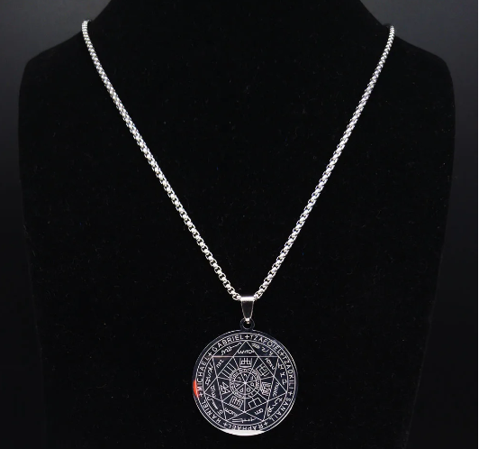 🛡️ Proteção Cósmica: O aço inoxidável é resistente e duradouro, assim como a proteção que ele oferece. Este amuleto é uma armadura espiritual que o guarda de qualquer energia negativa.
