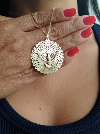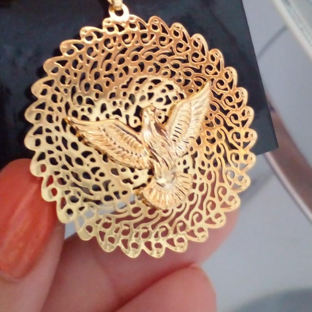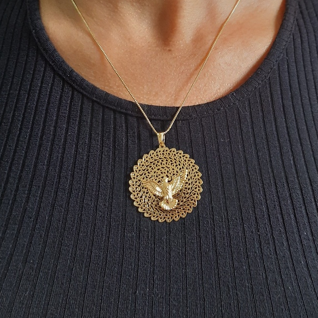 Colar Divino Espirito Santo Semi joias Banhada a Ouro 18 com 10 milésimos