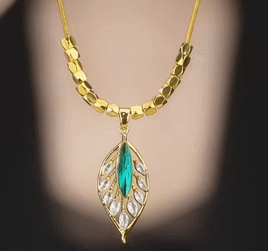 ✨ Estilo Elegante com Propósito: Adorne-se com uma peça que vai além da moda; o Colar Folha de Esmeralda é uma declaração de estilo que reflete sua conexão com a natureza e seu compromisso com o bem-estar.