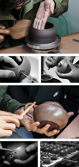 Trabalhamos apenas com os melhores artesãos locais que criam à mão cada bule que apresentam. Cada artesão e mulher residente em Yixing passam anos aprendendo a prensar a argila roxa úmida em uma peça plana perfeita. Esta única peça plana é então dobrada e manipulada para transformá-la em um pote. As ferramentas utilizadas para este processo são surpreendentemente mínimas: espátulas, pequenos martelos e agulhas de bambu: é uma verdadeira habilidade e que temos orgulho de apoiar.