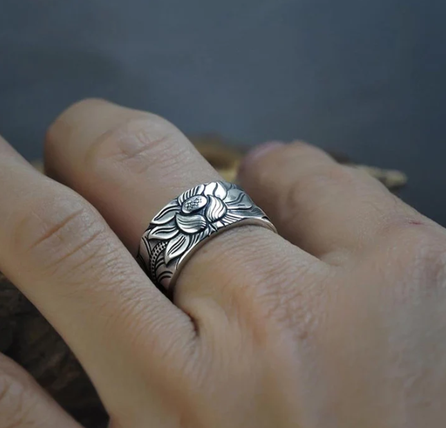 Feito com prata esterlina e meticulosamente trabalhado, use este belo Anel de Lótus para lembrar-se da força do lótus: