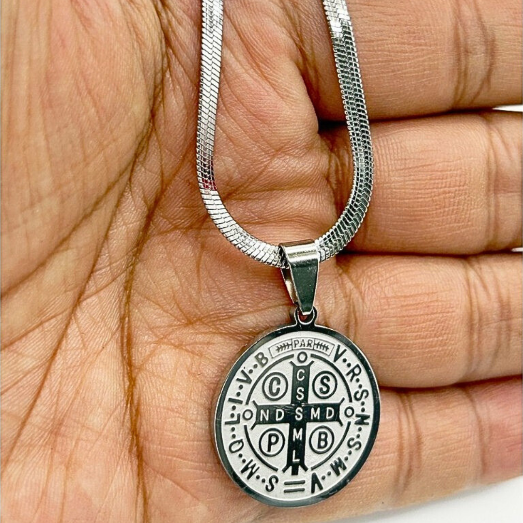 Colar com a Medalha de São Bento em Aço Inox 316L + FRETE GRÁTIS