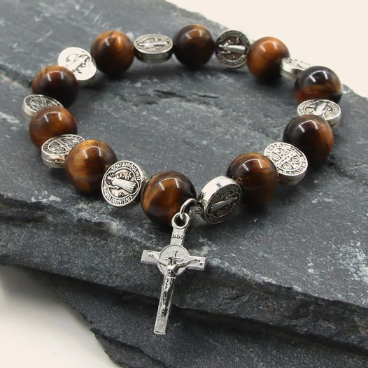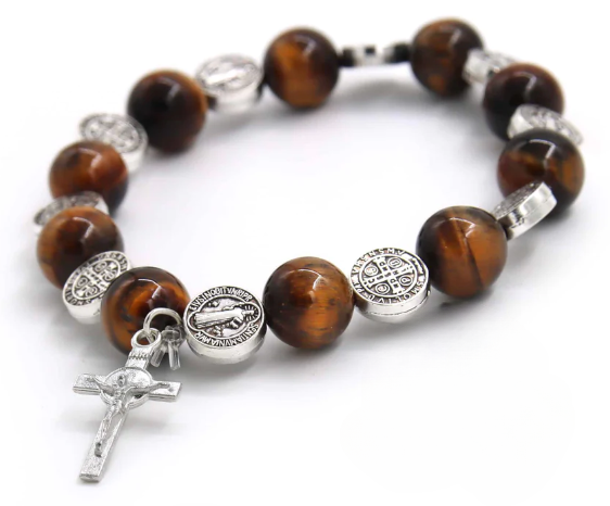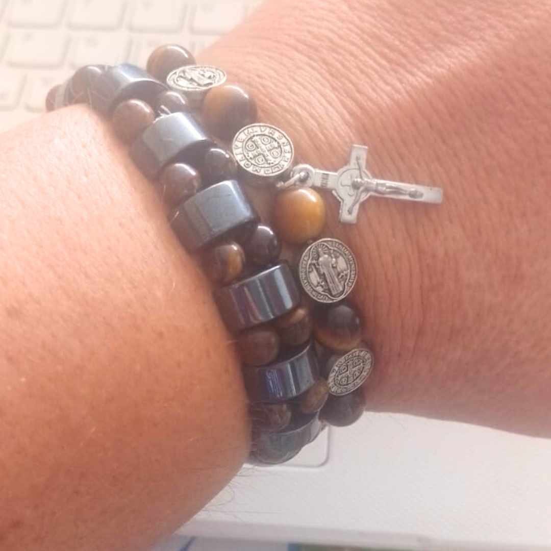 A PULSEIRA DO ROSÁRIO É PERFEITA PARA DEMONSTRAR SUA FÉ COM A FORÇA E PODER DAS PEDRAS OLHO DE TIGRE