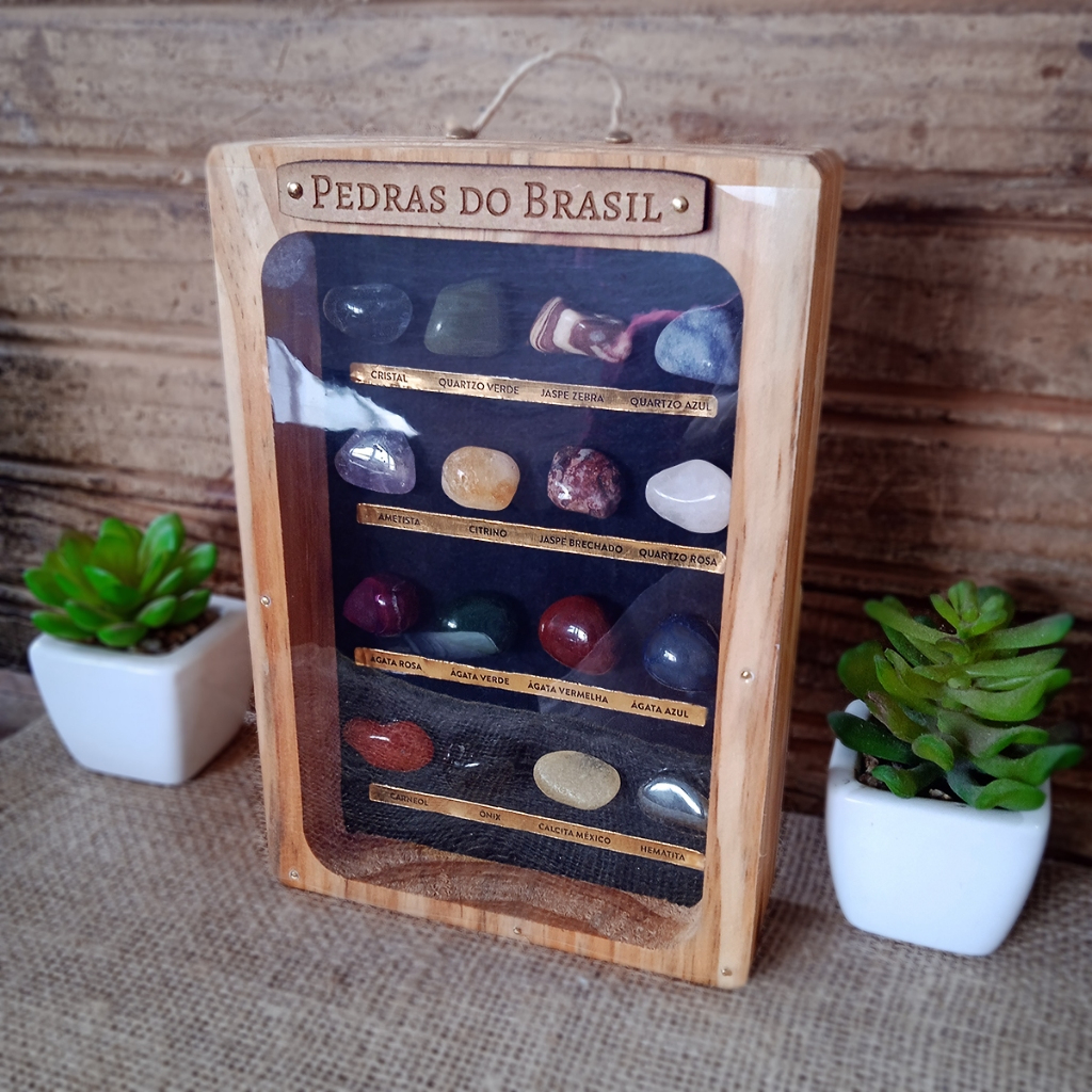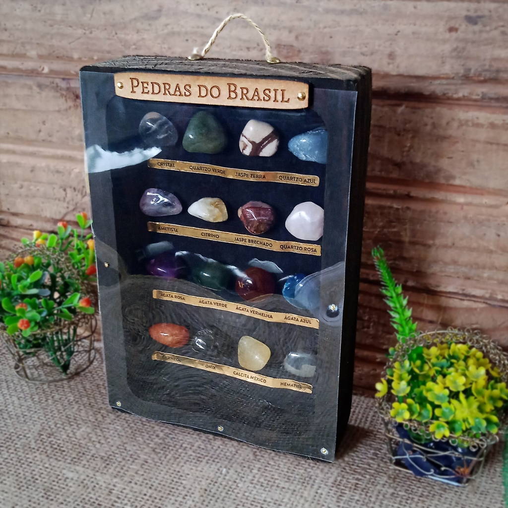📿💎 Quadro 16 Pedras Semi Preciosas Gemas Roladas