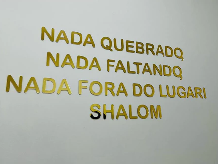 ✅ ACOMPANHA: • 1 x Frase Decorativa "Nada Faltando Nada Quebrado Nada Fora do Lugar!" (conforme foto deste anúncio); • Molde para instalação; • Fita dupla face aplicada ao verso do material.