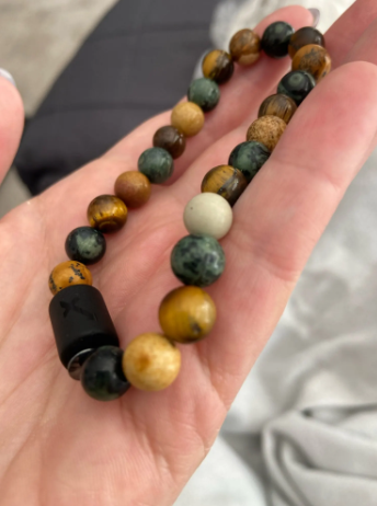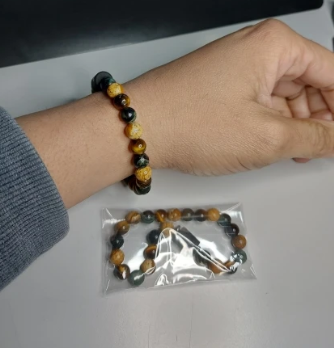 - Material: Pedra Olho de Tigre + Obsidiana Negra