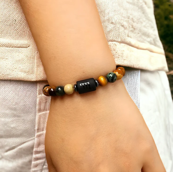 Abrace o toque celestial com a nossa Pulseira Zodíaco Elegance, elaborada minuciosamente usando pedra natural de obsidiana negra e o encanto magnético de contas de olho de tigre, uma combinação poderosa de proteção, equilíbrio emocional e coragem para enfrentar desafios da vida. Esta peça requintada não apenas eleva o seu estilo, mas também alinha o seu espírito com o ritmo cósmico.